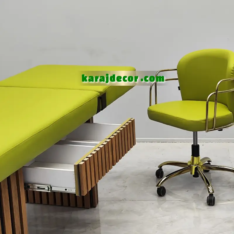 این تخت در کنار میز ناخن ژورنالی 003 فضای درمانی کاملی ایجاد می‌ کند.