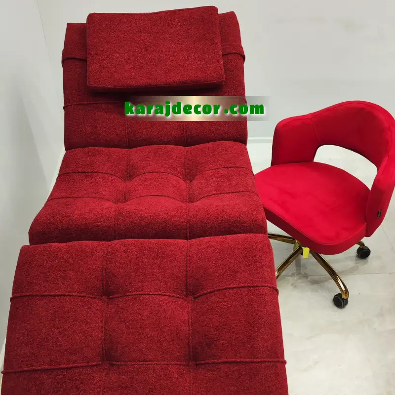 این تخت از جنس چوب ام دی اف و پارچه چرم و مخمل ساخته می شود که تکیه گاه آن قابلیت تنظیم ارتفاع دارد.
