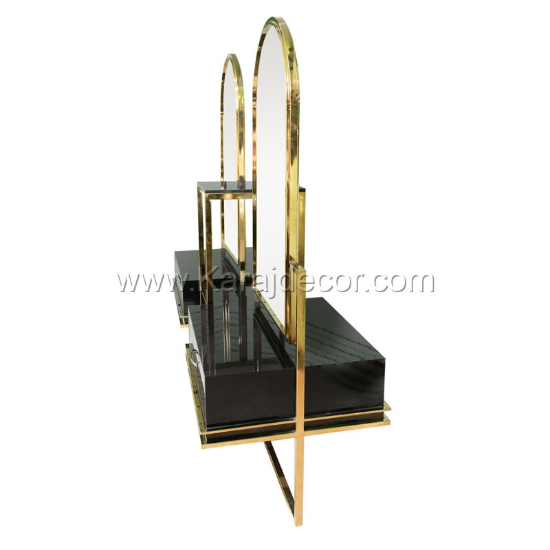 آینه کنسول اورانوس، یک آینه کنسول ایستاده آرایشگاهی است که بصورت دو رو یا دو طرفه طراحی شده است. این آینه و کنسول ایستاده اورانوس از بهترین متریال و تولید می شود و دارای رنگ بندی متنوع است. آینه کنسول آرایشگاهی اورانوس را می توانید با نور پدازی داخل از کرج دکور سفارش دهید.